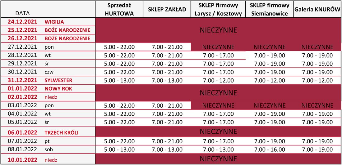 Zaplanuj świąteczne zakupy... i sprawdź kiedy możesz odwiedzić nasze sklepy: